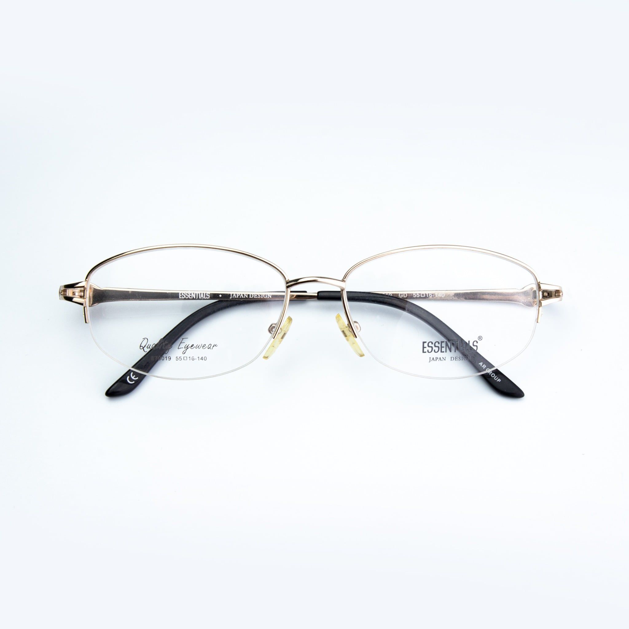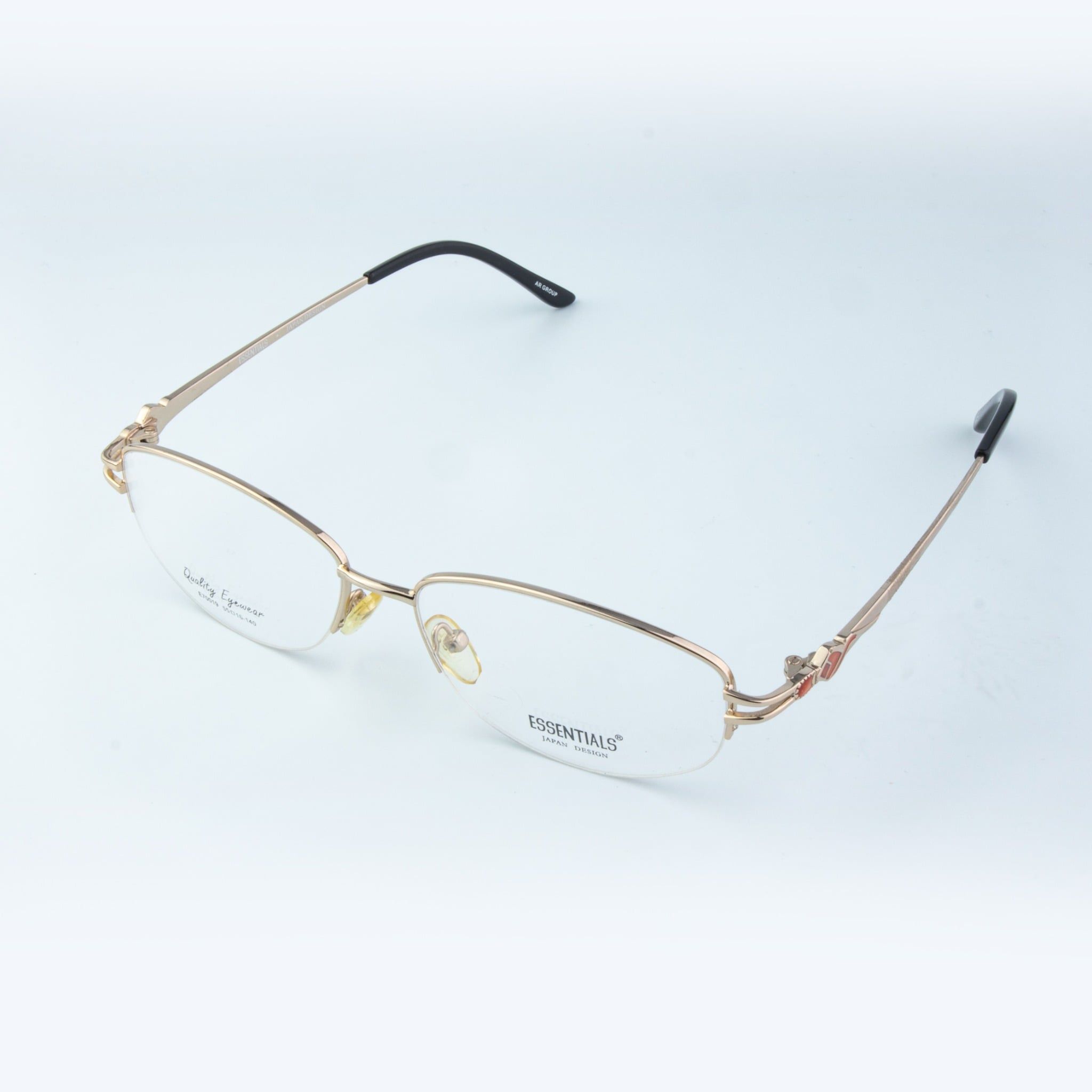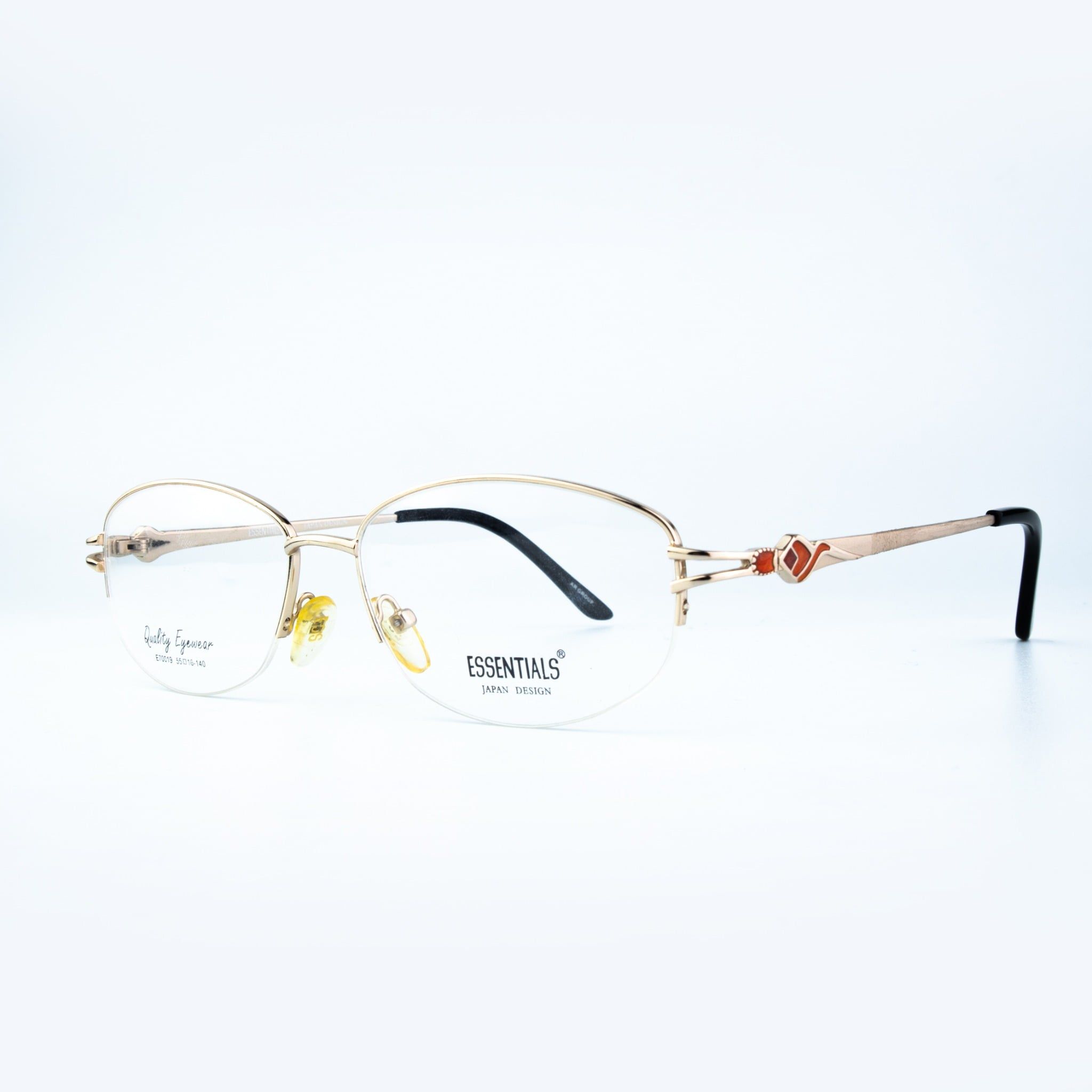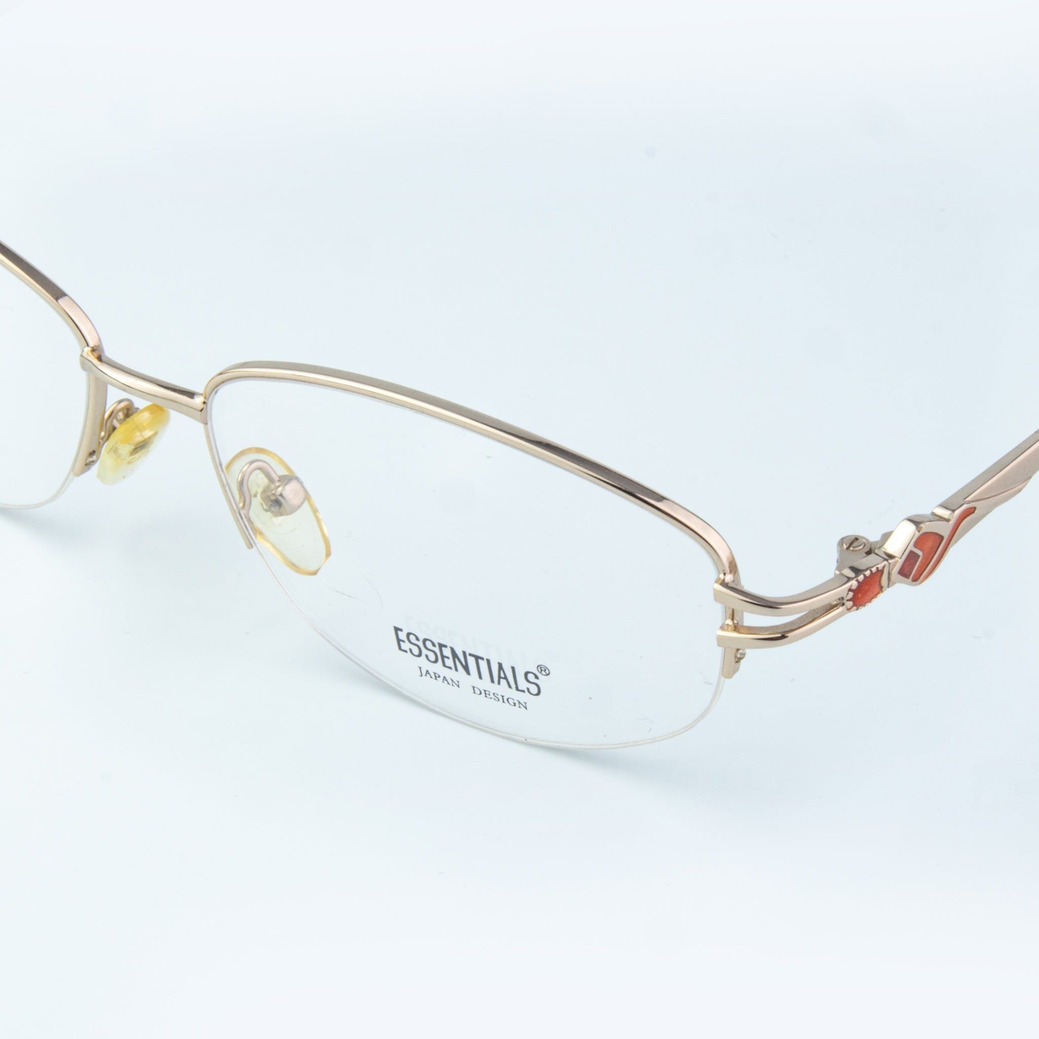 Thiết kế & Phong cách: Dáng chữ nhật nửa khung hiện đại kết hợp sắc vàng Gold quý phái và điểm nhấn họa tiết ở càng kính, tôn vinh vẻ đẹp trí tuệ và thanh lịch.