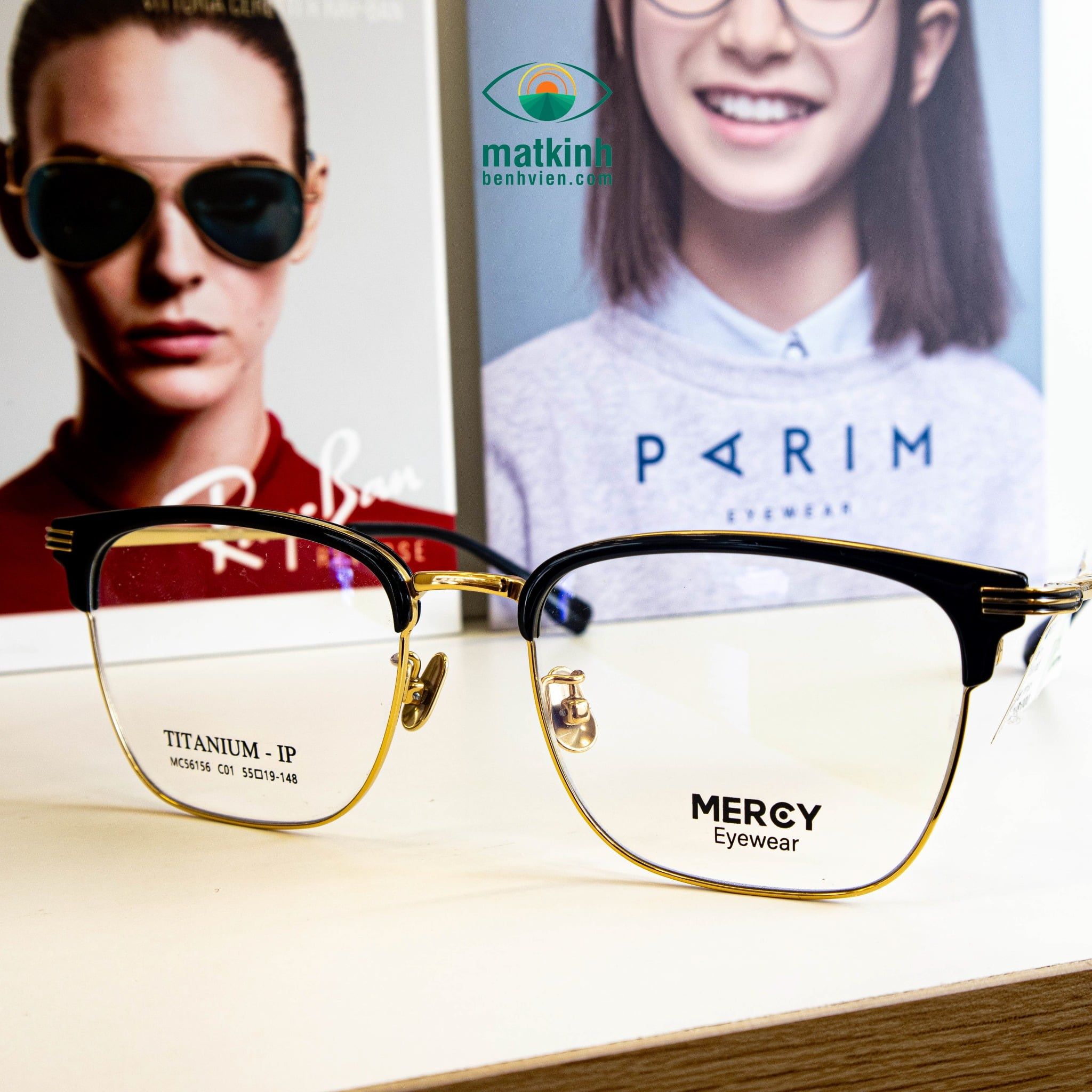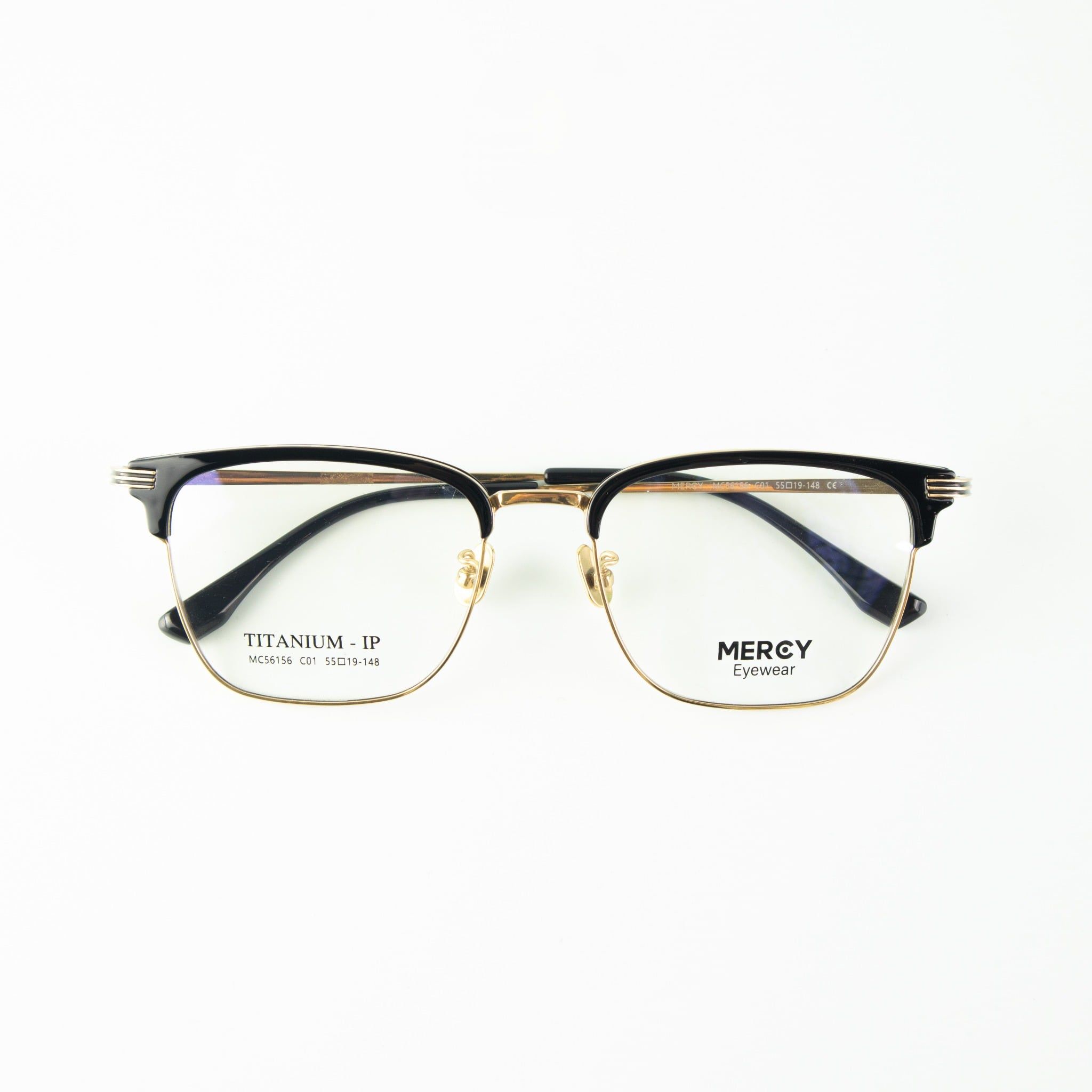 Gọng Kính Cận Unisex MERCY MC56156 – Dáng Browline, Titanium IP Cao Cấp Siêu Nhẹ